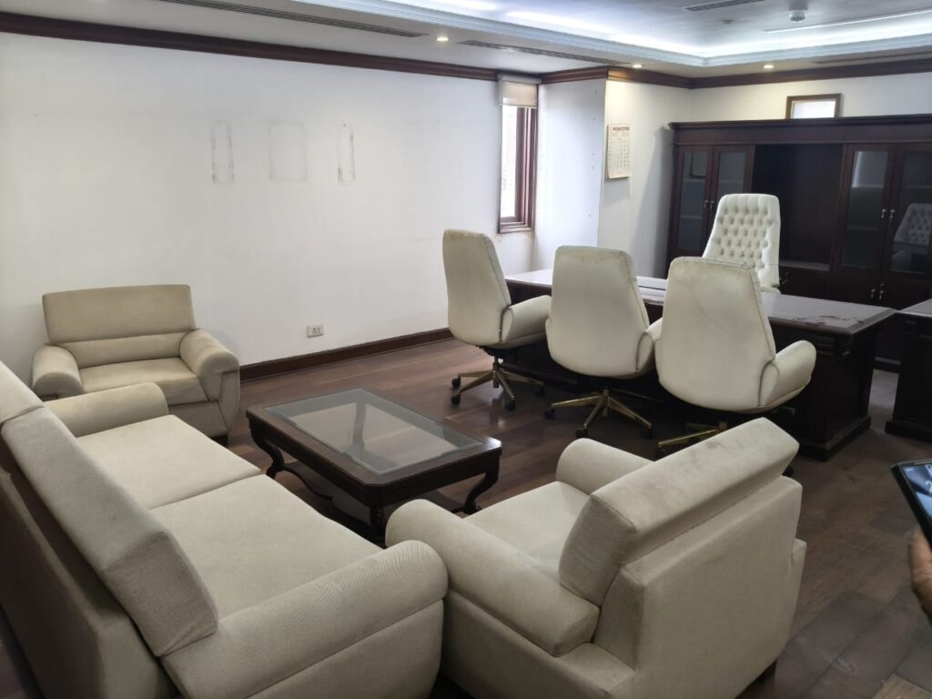 Full-scale dismantling of office interiors, including cabins, false ceilings, and flooring.